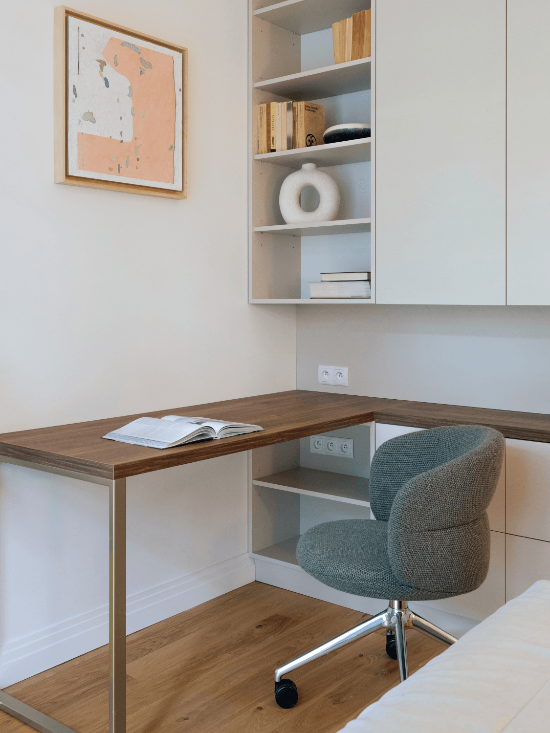 Impulsem do zmian była nowa szkoła córki i chęć odzyskania czasu traconego na codzienne dojazdy. Bliskość metra i tętniące życiem miasto stały się nowym, wygodnym tłem dla codzienności Inwestorów. Naszym zadaniem było stworzenie przestrzeni, która mimo wielkomiejskiej lokalizacji, zapewni domownikom spokój i ukojenie.
